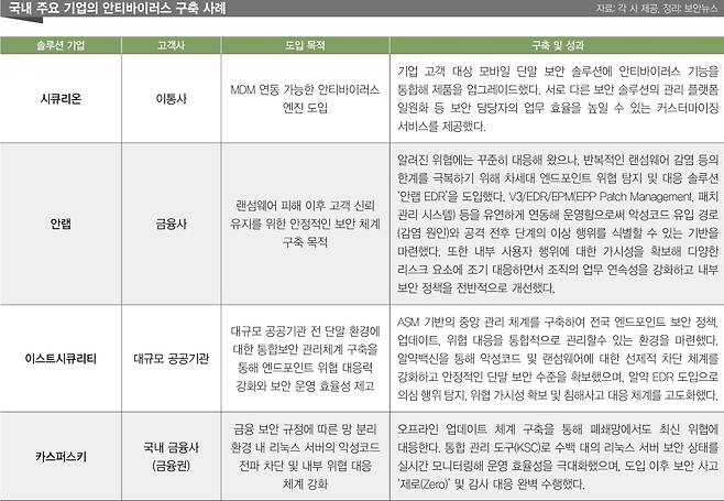 특히 LockBit, RansomHub 등 조직적인 RaaS(서비스형 랜섬웨어) 그룹들이 제조·금융 등 산업 전반을 가리지 않고 공격하고 있어 1차 방어선인 안티바이러스의 ‘기초 체력’이 부실할 경우 기업 보안 체계 전체가 순식간에 무너질 수 있다는 우려도 나온다.