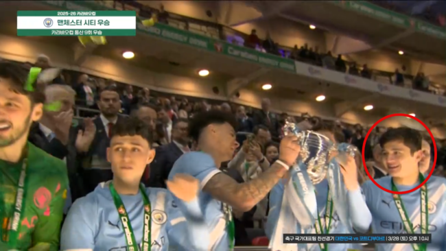 다만 경기 후 우승 세리머니 도중 논란의 장면이 나왔다. 맨시티 선수들이 2층 관중석으로 올라가 한 명씩 우승컵을 들어 올리며 트로피 세리머니를 펼쳤다. 중계 카메라도 이를 클로즈업하고 있었다.