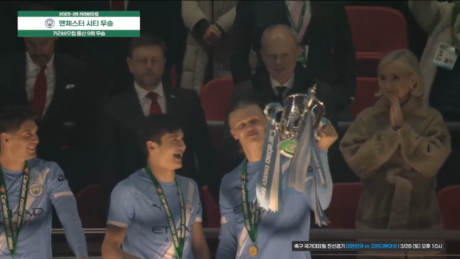 맨체스터 시티는 23일(한국시간) 영국 런던의 웸블리 스타디움에서 열린 2025-2026시즌 카라바오컵(리그컵) 결승전에서 아스날을 2-0으로 제압했다.