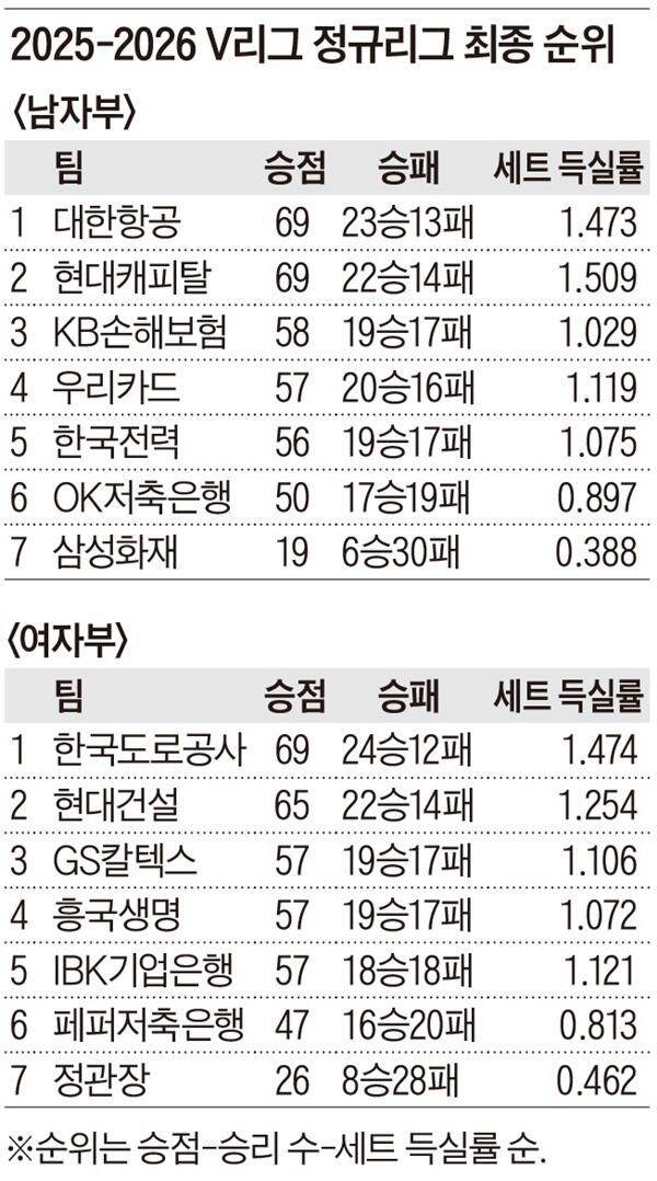 사상 처음… 남녀 4위까지 ‘봄 배구’
