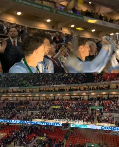 승리 후 맨시티 선수들은 우승 세리머니를 진행했다. 선수들은 차례대로 트로피를 들어올리면서 카라바오컵 우승의 기쁨을 맛봤다.