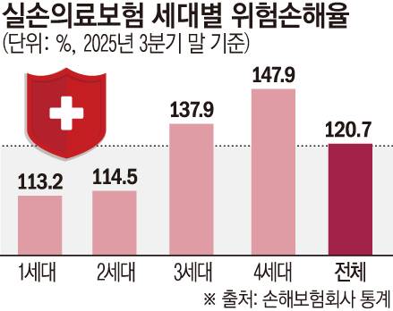 일부 보험사는 단독 가입을 허용하더라도 과거 병력을 엄격히 따지거나 특정 연령 이상은 사실상 가입이 불가능하도록 심사 문턱을 높였다. 이 같은 현상은 4세대 실손보험의 높은 손해율에서 비롯됐다. 지난해 3분기 기준 4세대 실손 손해율은 147.9%를 기록하며 1~3세대를 추월했다. 보험료로 받은 돈보다 지급한 보험금이 훨씬 많다는 뜻이다. 보험업계 관계자는 “실손보험은 팔수록 적자가 쌓이는 역마진 구조가 고착화됐다”며 “리스크 관리 차원에서 보수적인 판매 전략이 불가피하다”고 설명했다.