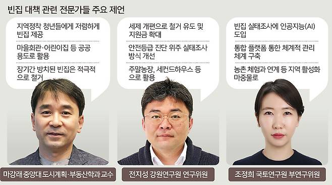 마강래 중앙대 도시계획·부동산학과 교수 역시 세컨드하우스에 대해선 부정적 입장이다. 마 교수는 “세컨드하우스는 관리가 어렵다”며 “다시 빈집으로 방치될 수 있다”고 우려했다. 그는 “지역에 정착하고자 하는 이들에게 우선권을 주고 특히 청년들에게는 저렴한 가격에 매수할 기회를 주는 방안을 고려할 필요가 있다”며 “마을회관이나 어린이집 등 공공 용도로 활용하는 방법도 괜찮다”고 조언했다.