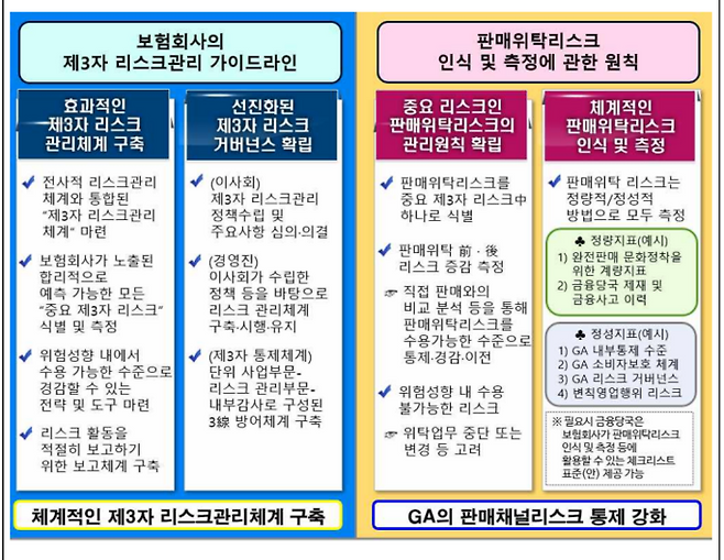 앞서 지난해 12월부터는 보험회사의 GA 관리책임 강화를 위한 제3자 리스크 관리 가이드라인이 전면시행됐다.