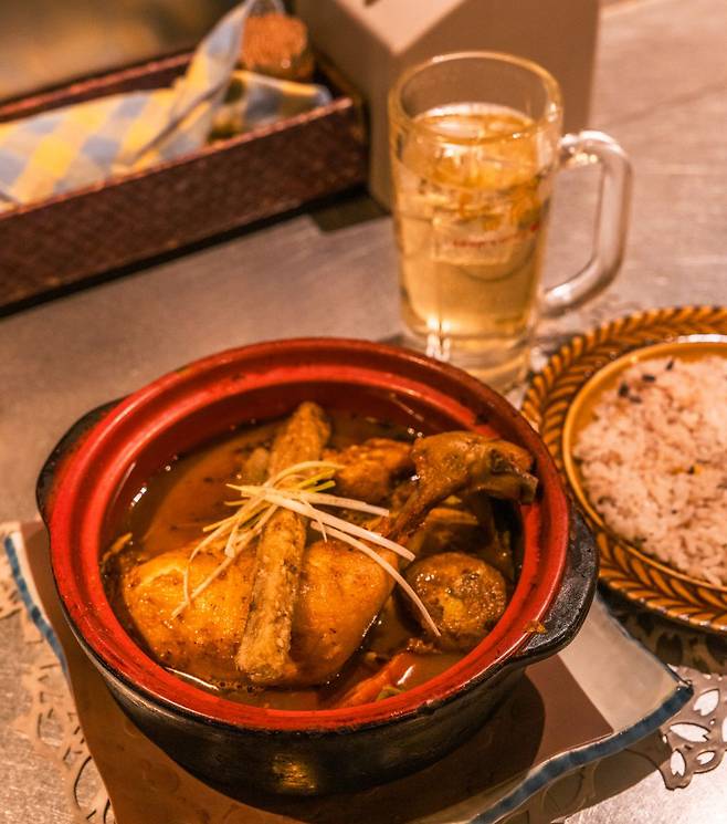 특별한 점은 달궈진 뚝배기에 카레를 낸다는 것인데, 천천히 먹어도 식사가 끝날 때까지 따뜻한 온도가 그대로 유지된다. 개별 룸, 바 자리, 좌식 등 자리 선택지도 다양하다. 특히 바 자리에서는 오픈 주방이 바로 눈앞에 펼쳐져 한솥 가득 담긴 키미 카레와 분주한 주방을 구경하는 재미도 챙길 수 있다.