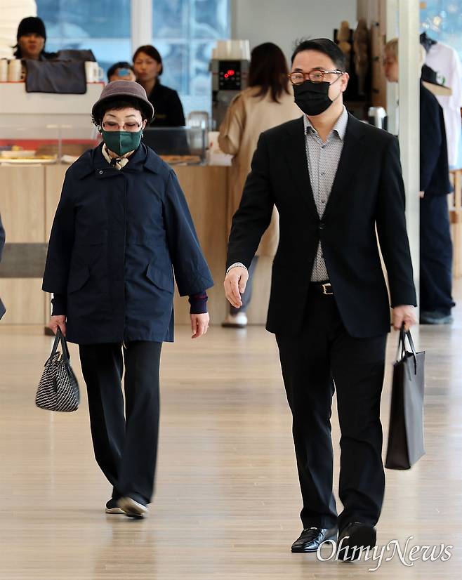 | ▲ 김건희 씨의 모친 최은순 씨와 오빠 김진우 씨, 김건희특검 출석 양평 공흥지구 개발 특혜 의혹과 관련해 전직 대통령 윤석열 씨의 부인인 김건희 씨의 모친 최은순 씨와 오빠 김진우 씨가 3일 오전 서울 종로구 김건희특검 사무실에 피의자 신분으로 출석하고 있다. 2025.11. 4 |
