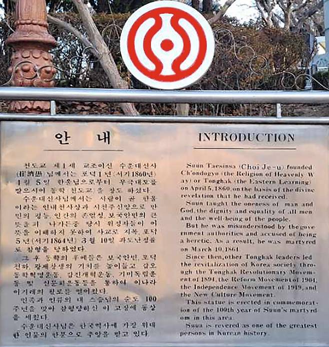 | ▲ 대구 달성공원 최제우 동상 앞 안내판 |