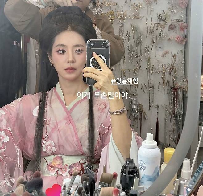 공개된 사진 속 한채아는 화려한 ‘왕홍 메이크업’을 소화한 모습이다. 핑크빛 한푸 스타일 의상을 입고 전통 장신구와 헤어 스타일링을 더해 이국적인 분위기를 자아냈다. 특히 메이크업 전 과정이 담긴 셀카 컷에서는 헤어 스타일링을 받는 모습이 담기며 변신 과정을 생생하게 보여줬고, 완성된 모습에서는 인형 같은 비주얼로 시선을 사로잡았다.