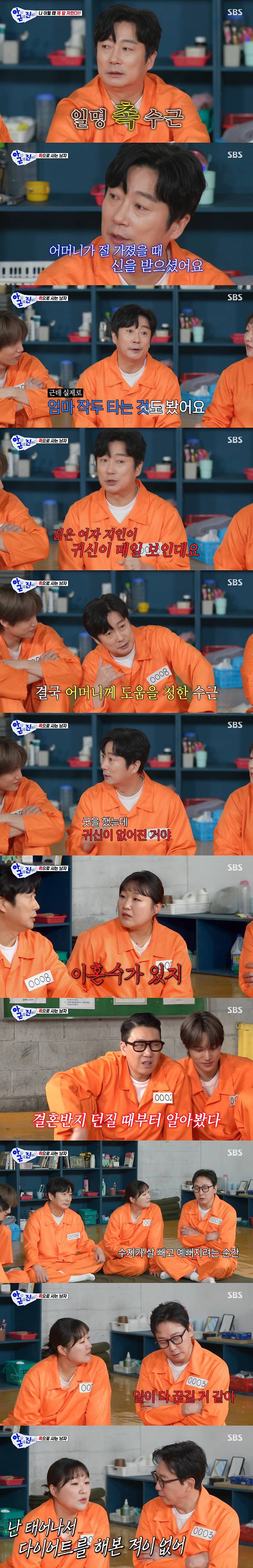 이수근은 "20대 여자 지인이 귀신이 매일 보인다고 하더라. 매일 귀신 소리가 들리고 너무 힘들다더라"면서 "부탁 안 들어주는데, 어머니한테 전화를 해서 도움 요청했다. 어머니께 업계 분 소개를 받은 지인이 굿을 했는데 귀신이 없어졌다더라"고 말해 눈길을 끌었다. 이수근은 "그런 세계가 또 있다. 이거는 믿거나 말거나다"라고 했다.