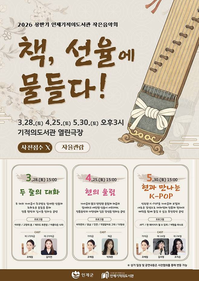 책장 넘기듯 흐르는 가야금 선율…인제 기적도서관 28일 음악회