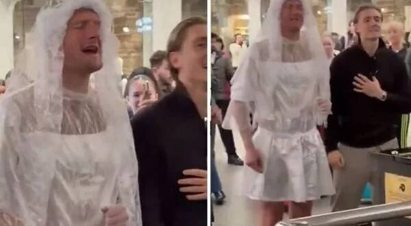 현역 프리미어리그 선수가 웨딩드레스를 입고 기차역에서 노래를 부르는 이색적인 모습으로 팬들의 뜨거운 반응을 불러일으켰다.
