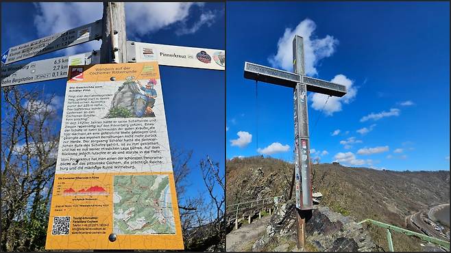 코헴성을 마주 보고 있는 산, 해발 225미터 높이의 전망대 피너크로이츠(Pinnerkreuz)다. 아직 우리나라 관광객들에게 널리 알려진 곳은 아니어서, 구글 지도에도 정보가 많지 않다. 원래는 마을에서 이곳까지 이어지는 리프트가 운영되지만, 겨울에는 강풍 등 안전 문제로 운행이 중단된다.