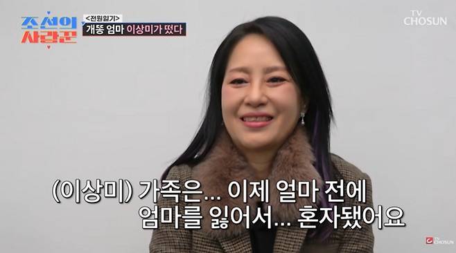 2년 전 뇌졸중을 앓던 어머니를 여윈 이상미는 "엄마가 다리가 불편하셨다. 92세까지는 너끈히 사실 줄 알았는데, 뇌졸중을 겪으시더니 어느 날 갑자기 그렇게 되셨다"며 "평생 엄마와 단둘이 살았다"고 덧붙였다.