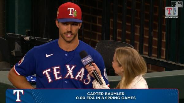 텍사스 레인저스 투수 카터 바움러는 24일(이하 한국시각) 미국 텍사스주 알링턴의 글로브 라이프 필드에서 열린 2026 MLB 스프링 트레이닝 시범경기 캔자스시티 로열스전에 등판해 1이닝 1탈삼진 '퍼펙트'를 기록했다.