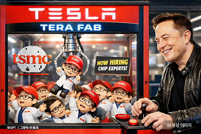 일론 머스크 최고경영자(CEO)는 지난 21일 텍사스 오스틴에 있는 테슬라 제조공장에서 기자회견을 열고 자체 AI 칩 생산을 위한 테라팹 프로젝트를 가동할 계획이라고 밝혔다. 목표는 2㎚(나노미터·10억분의 1m) 웨이퍼를 생산하는 것이다. 그는 이를 두고 "우리가 지으려는 테라팹은 역사상 가장 거대한 칩 생산 프로젝트"라며 "문명의 에너지와 컴퓨팅 규모를 몇 단계 끌어올리겠다"라고 말했다. 그동안 미국 빅테크(대형 정보기술 기업)의 주요 파운드리(반도체 위탁생산) 파트너사였던 대만 TSMC 대신 자체 공급망으로 선회한 셈이다.