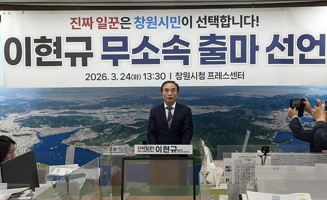 이현규 출마자는 25일 창원시청 프레스센터에서 기자회견을 열고 "정당 공천보다 시민의 판단이 우선"이라며 "창원의 미래를 시민 앞에서 다시 평가받겠다"고 밝혔다.