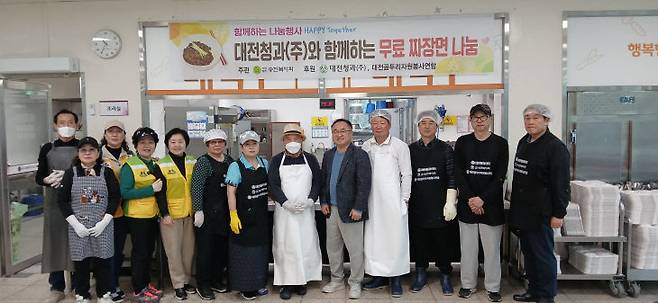 | 대전청과(주)와 함께하는 무료 짜장면 나눔 행사가 24일 동구행복한어르신복지관에서 열렸다. 사진= 동구행복한어르신복지관 제공 |