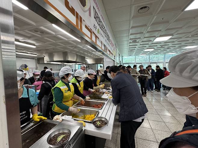 봄기운이 완연한 날 24일 대전 동구행복한어르신복지관(관장 김남흥) 식당에는 유난히 따뜻하고 맛있는 향기가 가득했다.