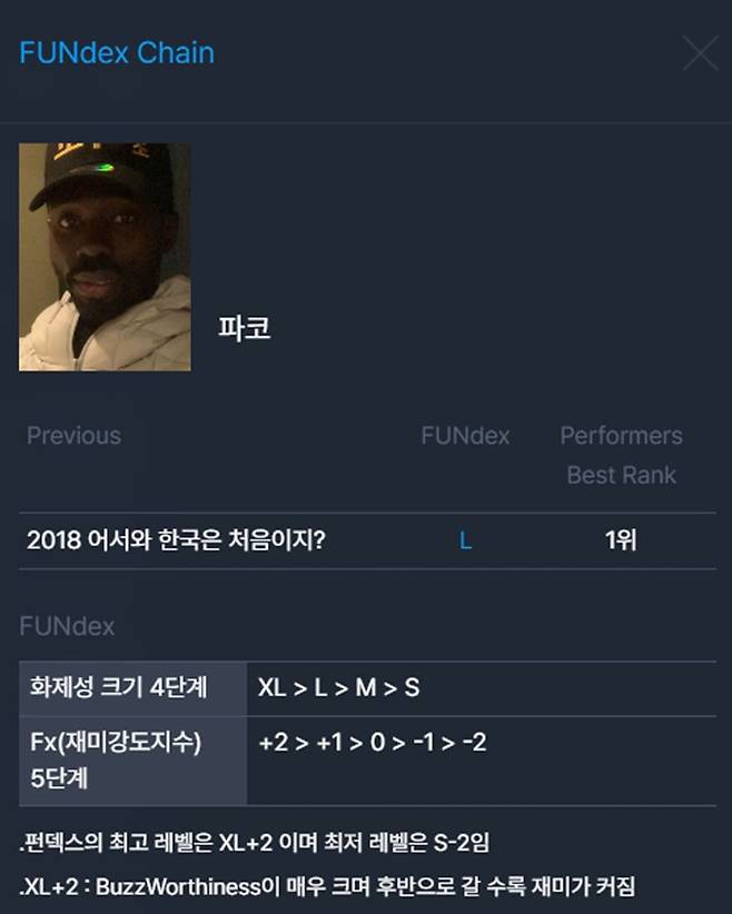 [TV리포트=송시현 기자] 파코가 ‘어서와 한국은 처음이지?’ 프로그램을 통해 출연자 화제성 1위에 올랐다. 2017년 ‘어한처’ 첫 방송 이후 처음으로 출연자가 1위에 오르는 기록이다. 굿데이터코퍼레이션 펀덱스(FUNdex)에서 발표한 3월 3주차 TV-OTT 통합 비드라마 출연자 화제성 부문에서 파코는 이 같은 성과를 거두었다.