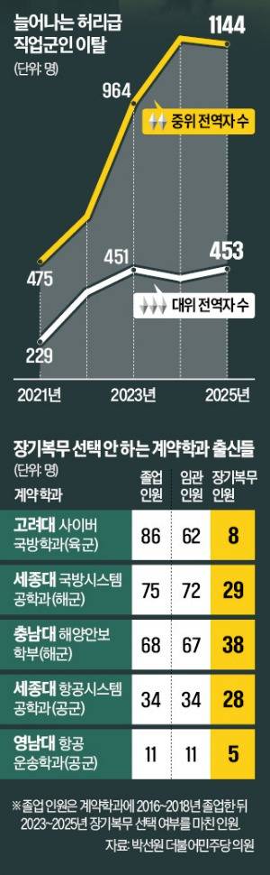 군 계약학과 출신 청년들이 '평생 군인'의 길을 외면하고 있다.