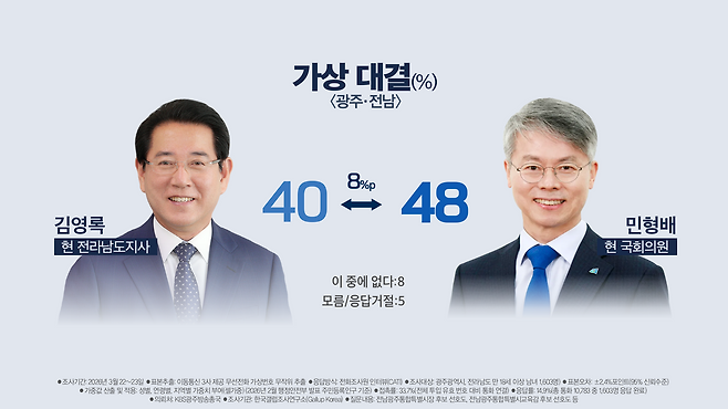 ■가상 대결…김영록 40% 민형배 48%