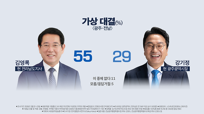 ■가상 대결…김영록 55% 강기정 29%