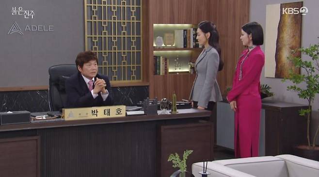 24일 방송된 KBS 2TV 일일드라마 '붉은 진주' 19회에서는 김단희(박진희 분)와 클로이(남상지 분)가 아델 바이오 사업 심볼 디자인 심사에서 각자의 목적을 달성하는 모습이 그려졌다.