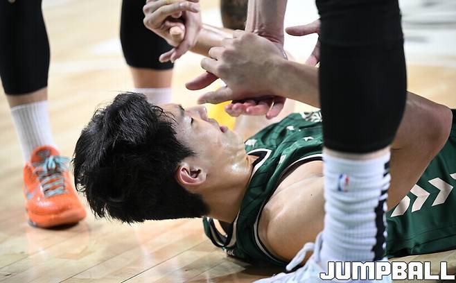 [부상] 1Q 종료 전 입은 불의의 부상… 김주성 감독은 “어지럽다고 하는데… 경과 지켜봐야”