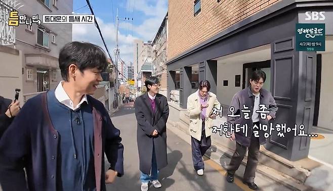 이제 점심을 먹으려는 네 사람. 동네를 꿰뚫고 있는 유준상은 길 안내를 척척했지만, 맛집을 알고 가는 건 아니었다. 유재석이 "난 형이 맛집 찾아가는 줄 알았다"라고 당황하자 유준상은 "전 아는 맛집이 없다"라고 해맑게 말했다.