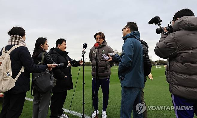 (밀턴킨스[영국]=연합뉴스) 최재구 기자 = 코트디부아르전을 앞둔 한국 축구 국가대표팀의 홍명보 감독이 24일(현지시간) 영국 런던 북서쪽 밀턴킨스에서 팀훈련에 앞서 취재진과 인터뷰하고 있다. 2026.3.25