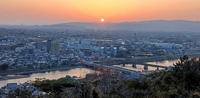 | ▲ 다이키치야마 전망대에서 바라본 우지 시내 전경 우지가미 신사 바로 위에 있는 다이키치야마 전망대. 걸어서 20분만 오르면 우지의 전경이 한눈에 보인다. 우지의 해가 지는 모습을 담았다. |