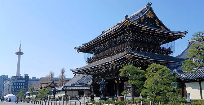 | ▲ 교토 히가시혼간지 교토시의 히가시혼간지. 왼쪽에 보이는 곳은 교토역 맞은편 교토타워이다. 내가 오사카에서 교토에 갈 때 자주 다니는 길이다. |