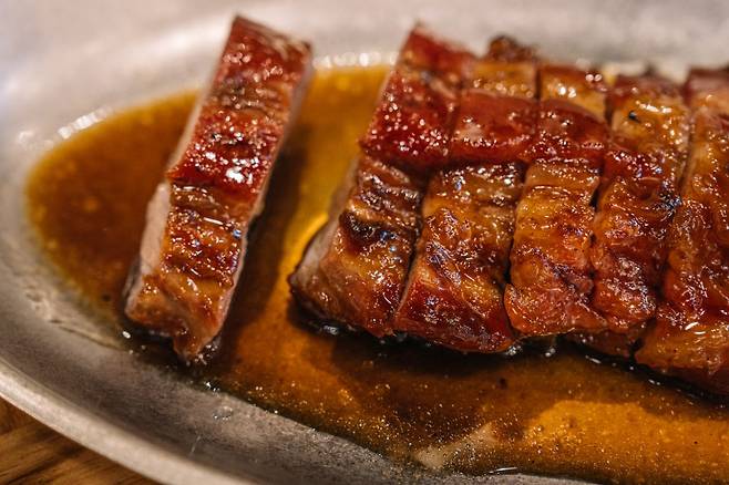 팻 제이 차슈는 센트럴 완차이에 자리한 차슈 전문 레스토랑이다. 전통 광둥식 바비큐인 차슈(Char Siu)를 이곳만의 감각으로 풀어낸다. 전통적인 꿀·간장 베이스 양념을 사용하면서도 과도한 단맛을 줄이고 고기의 풍미와 육즙을 강조하는 방식으로 조리한다. 겉면은 윤기 있게 캐러멜라이즈되고, 속살은 촉촉하게 유지돼 한 입만으로도 완성도가 분명하게 느껴진다.