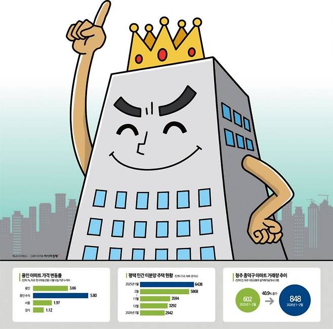 25일 한국부동산원 집계를 보면 이달 16일 기준 경기도 용인시의 올해 아파트 가격 누적 상승률은 3.66%로 집계됐다. 서울과의 접근성이 좋고 용인 내에서도 가장 먼저 도시화가 이뤄진 수지구의 경우 같은 기간 5.80% 올랐다. 서울 아파트 상승률이 1.97%인 것과 비교하면 상승 폭이 훨씬 큰 수준이다.