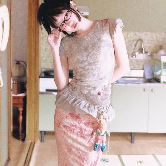 슬리브리스 톱 49만원 Courrèges. 프린팅 티셔츠 7만9천원 Open Yy. 스트라이프 티셔츠 6만5천원, 레이어드 스커트 16만8천원 모두 Sinoon. 디스트로이드 데님 팬츠 1백98만원 Blumarine. 체인 벨트 가격미정 Versace. 테디베어 키링 68만원 Moschino. 플라워 패턴 뮬 1백90만원 Loewe. 헤어핀 에디터 소장품.