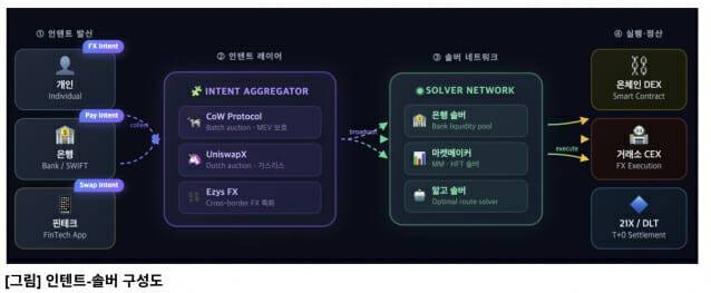 바로 이 지점에서 기존 자동화 마켓메이커(AMM) 방식의 한계가 수면 위로 드러나고 있다. 동시에 인텐트(의도)와 솔버(해결안 제공자) 아키텍처가 대안으로 빠르게 부상하고 있다.