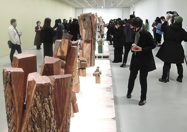 | ▲ '김윤신조각전'이 열리는 용인 삼성 호암미술관 로비 입구 장면 |