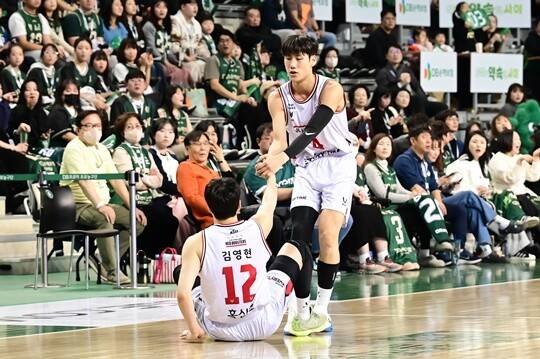 후속 트레이드가 이뤄졌다. DB에 있던 김영현(186cm, G)이 정관장 소속이었던 최성원(184cm, G)과 맞트레이드된 것. 정관장 유니폼을 입은 김영현은 끈질긴 수비와 높은 에너지 레벨을 보여줬다. 또, 벤치 밖에서는 특유의 ‘고라니 토킹’(?)으로 팀원들을 독려했다.