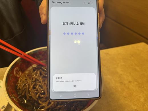 이날 정오 12시 20분경 점심 시간에 삼성페이 결제 시스템을 이용할 수 없는 것으로 파악됐습니다.