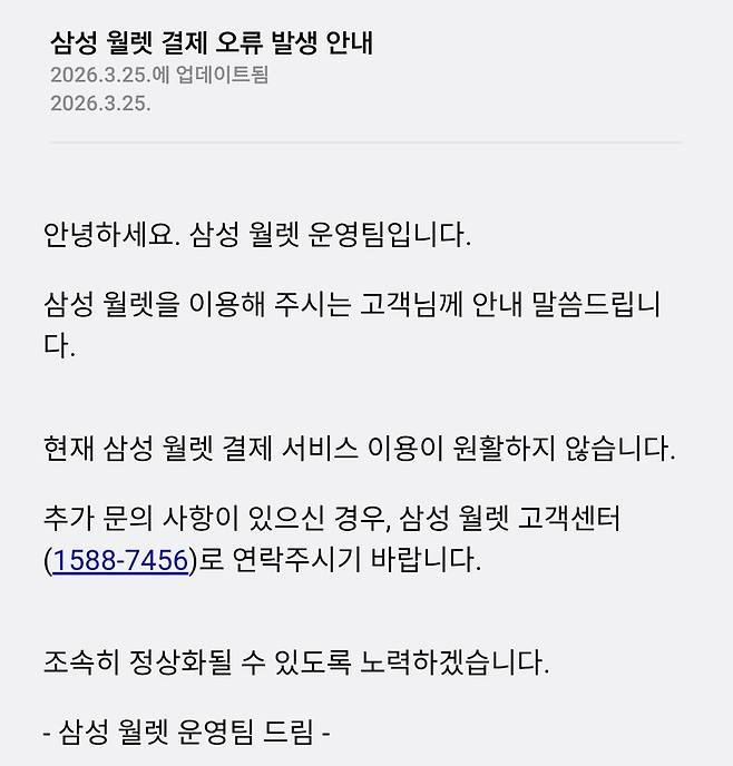 [삼성 월렛 운영 공지 갈무리]