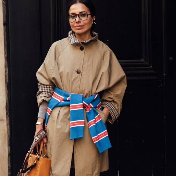 스웨터나 셔츠를 꼭 입으란 법은 없습니다. 허리나 어깨에 툭 걸쳐 묶는 것만으로도 그 어떤 주얼리보다 훌륭한 포인트 액세서리가 되니까요. 캐주얼한 자켓과 화이트 팬츠 룩에 강렬한 레드 스트라이프 니트를 허리에 둘러 묶으면 단숨에 룩의 온도가 올라갑니다. 혹은 클래식한 베이지 트렌치코트 위에 쨍한 블루 스트라이프 니트를 무심하게 묶어보는 것도 좋은 예시인데요. 마치 벨트처럼 실루엣을 잡아주면서도 룩에 입체적인 리듬감을 더해줍니다.