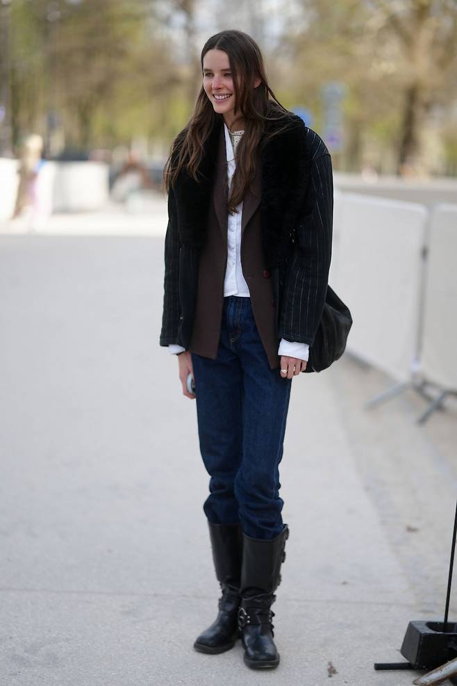 최근 ‘ 올슨 턱 ’ 헤어 스타일이 화제죠. 이 원리는 청바지와 부츠의 조합에도 그대로 적용됩니다. 스키니 진을 롱부츠 안으로 넣어 연출하는 방식은 여전히 가장 안정적이고 간결한 선택입니다. 물론 스키니 진의 귀환에 대해서는 의견이 엇갈리지만, 이 스타일링에 있어서는 여전히 가장 효과적인 옵션이죠. 다만 전체적인 룩이 지나치게 캐주얼해 보일 수 있기 때문에, 구조적인 블레이저나 존재감 있는 토트백을 더해 균형을 맞추는 것이 중요합니다. 그렇게만 하면 단정함과 실용성을 동시에 잡을 수 있죠.