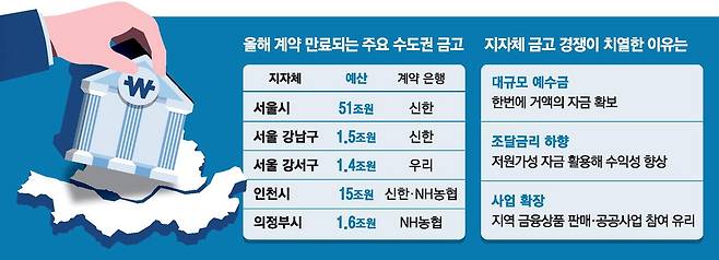 은행들의 핵심 타깃은 서울시를 비롯한 수도권 내 지자체들이다. 우선 예산 규모가 크고, NH농협은행 등 특정 은행의 독점 구조가 지방에 비해 상대적으로 약하기 때문이다.