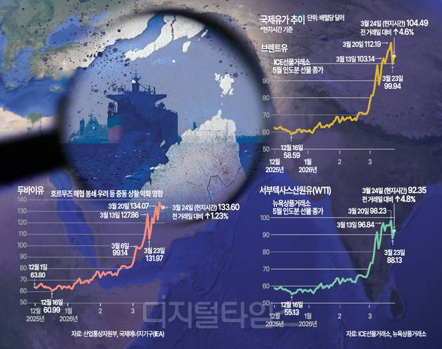 실제로 산업부 원자재가격정보에 따르면 전날 싱가포르에서 거래된 두바이유 현물 가격은 배럴당 157.3달러를 기록했다. 전일인 지난 23일엔 169.75달러까지 치솟았다.