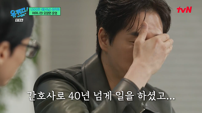 “어머니를 위해 요양원을 운영 중”이라는 유지태는 “어머니 꿈이 요양원을 응원하는 거였고 홀어머니를 모시다보니 어머니 가시는 길까지 책임지고 싶다”고 운영 이유를 밝혔다. 이어 유재석이 “어머님이 40년 간 간호사였다”고 설명을 곁들이자 유지태는 갑자기 울컥하며 말을 잇지 못했다.