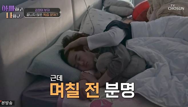 이날 방송에서 김정태는 첫째 아들이 학원에 간 사이 잠에서 깨어 둘째 아들과 아침 시간을 보냈다. 아직 잠든 아들의 발바닥을 간지럽히고, 뽀뽀를 하는 등 아침부터 적극적인 애정 표현을 이어갔다. 앞서 김정태는 둘째 아들 시현과 ‘잠잘 때는 과한 스킨십을 하지 않겠다’는 약속을 했던 상황. 그러나 그는 백허그를 하는 등 약속을 지키지 못하는 모습을 보였다.