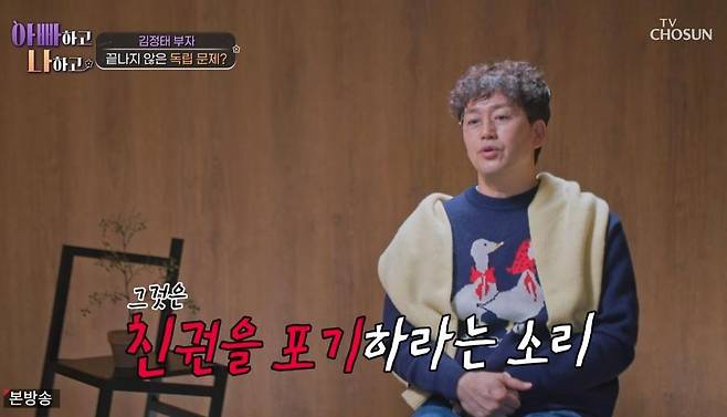 25일 방송된 TV CHOSUN 예능 프로그램 '아빠하고 나하고 시즌3'에서는 배우 김정태가 두 아들과의 일상을 공개하며 각기 다른 방식의 부자 관계를 보여줬다.