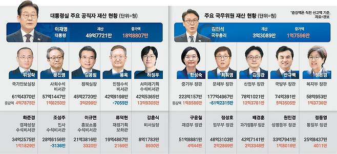 靑 참모 48명 중 다주택 10명 … 李대통령 재산 1년새 18.8억 늘어
