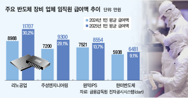 리노공업·주성엔지니어링 등 주요 장비사 급여 30% 안팎 폭등