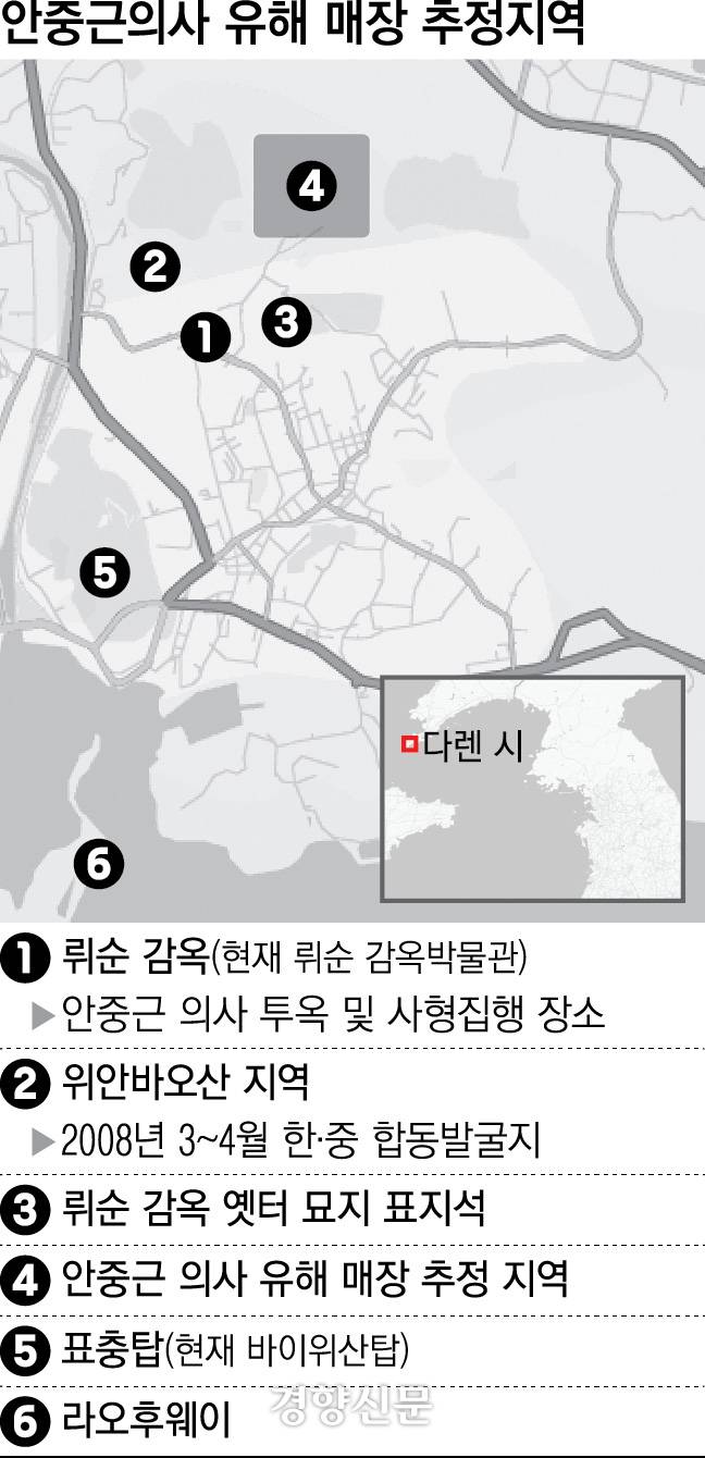 이 전 교수는 “위안바오산이나 감옥 바로 옆이라는 기존 발굴 지점에서 나아가 뤼순 감옥 옛터를 기점으로 반경 1㎞ 지점을 위성지도와 고지도를 대조해 봐야 한다”면서 “청나라 기병영터와 마잉푸 부락 위치, 기사에 명시된 일반 형사범의 매장 기록 확인도 필요하다”고 말했다. 아울러 “한민족 전체가 공유하는 역사적 인물인 안 의사의 유해 발굴을 남북이 공동으로 추진한다면 민족 공동의 역사 인식을 회복하고 상호 신뢰를 구축하는 중요한 계기가 될 것”이라고 밝혔다.